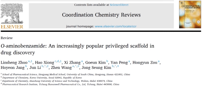 药物研发是一个复杂且资源密集的系统性工程,有效的分子设计策略是药物研发成功的关键决定因素。近日,南华大学药物设计与研发团队基于邻氨基苯甲酰骨架深度阐明了药物分子设计中的“伪环效应”,在国际顶级期刊《Coordination Chemistry Reviews》(IF=23.5,中科院1区Top)发表了题为“O-aminobenzamide: An increasingly popular privileged scaffold in drug discovery”的高水平综述论文,南华大学药学院为第一通讯单位。