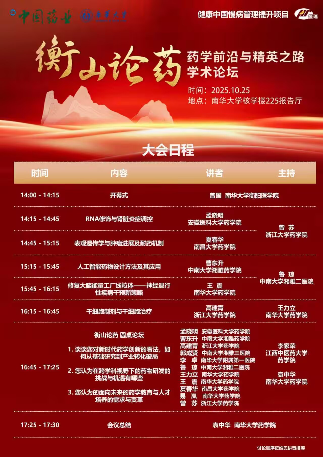 “衡山论药”——药学前沿与精英之路学术论坛会议通知