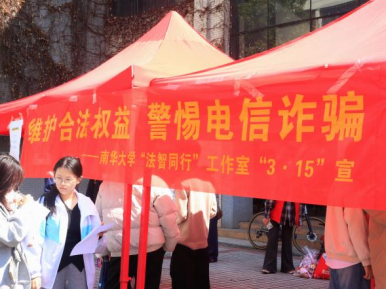 值“3·15”国际消费者权益日之际,由法智同行工作室主办,药学院、公共卫生学院、松霖建筑与艺术设计学院联合承办的“‘健康’‘权益’我守护”主题普法暨反诈宣传活动,于3月15日在红湘校区南华楼前坪、雨母校区笃行园食堂前坪同步开展。活动吸引了广大师生踊跃参与,现场气氛热烈。