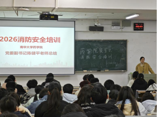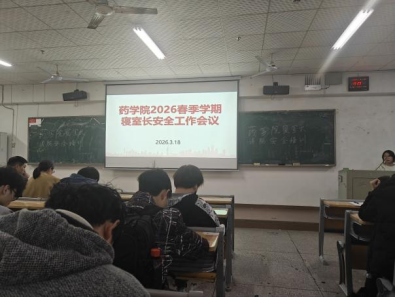 为切实增强学生消防安全意识与应急处理能力,3月18日,南华大学药学院在南华楼312教室成功举办“全民消防·生命至上”2026年春季学期寝室长安全工作会议。会议对全院寝室长进行消防安全培训,强调安全注意事项。党委副书记陈健平老师、宿舍专干彭翔老师及23-25级全体寝室长参会。