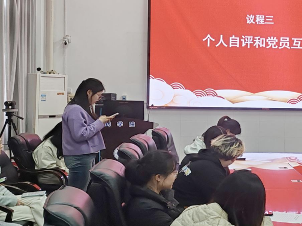 随后,支部书记刘华代表支部班子作对照检查,总结2025年度支部工作成效,剖析存在的问题,提出改进方向。2025年,支部全年开展专题党课10余次,召开支委会20余次,规范接收预备党员15人;围绕创新创业、学业帮扶、心理护航、就业服务等开展特色活动,推动党建工作与学生发展深度融合。但存在如理论学习与党建活动融合度不高、部分党员参与主动性不足等问题,下一步将通过完善激励机制、联合党团组织打造品牌项目等方式持续优化支部建设。支部党员联系思想和工作实际开展批评与自我批评,紧扣思想政治表现、理论学习、作用发挥、纪律建设等方面深入查摆问题,大家开诚布公、实事求是,既指出短板弱项,也提出改进建议。